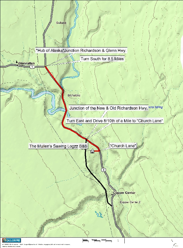 We are located at Mile 105 on the Old Richardson Highway in Copper Center, Alaska